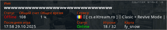 Последний раз был в сети 17:58 29.10.2025 Игрок с таким ником замечен на 31 сервере