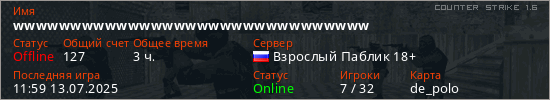 Последний раз был в сети 11:59 13.07.2025 Игрок с таким ником замечен на 31 сервере