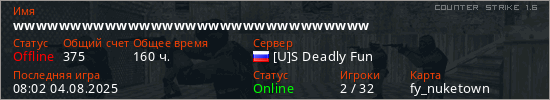 Последний раз был в сети 08:02 04.08.2025 Игрок с таким ником замечен на 31 сервере