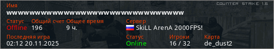 Играет на Counter Strike 1.6 сервере. Страна: РоссияПервый раз замечен 11:47 08.08.2022