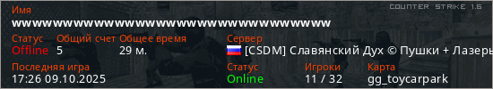 Последний раз был в сети 17:26 09.10.2025 Игрок с таким ником замечен на 31 сервере