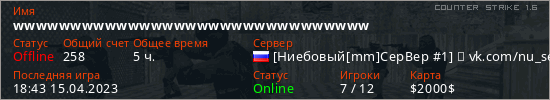 Последний раз был в сети 18:43 15.04.2023 Игрок с таким ником замечен на 31 сервере