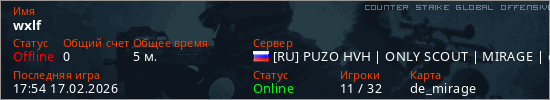 Играет на Counter Strike Global Offensive сервере. Страна: РоссияПервый раз замечен 17:52 17.02.2026