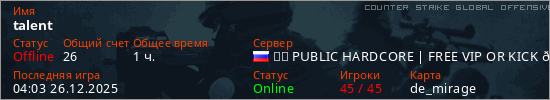 Последний раз был в сети 04:03 26.12.2025 Игрок с таким ником замечен на 29 серверах