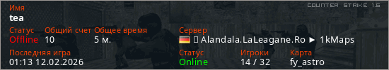 Играет на Counter Strike 1.6 сервере. Страна: ГерманияПервый раз замечен 01:11 12.02.2026