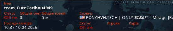Играет на Counter Strike Global Offensive сервере. Страна: СШАПервый раз замечен 16:35 10.04.2026
