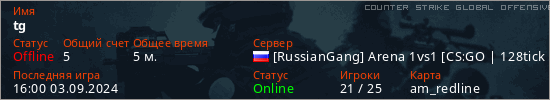 Играет на Counter Strike Global Offensive сервере. Страна: РоссияПервый раз замечен 15:43 03.09.2024