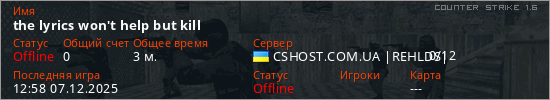 Играет на Counter Strike 1.6 сервере. Страна: УкраинаПервый раз замечен 12:58 07.12.2025