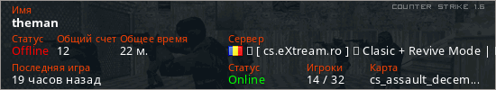 Последний раз был в сети 14 часов назад Игрок с таким ником замечен на 5 серверах