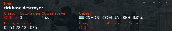 Играет на Counter Strike 1.6 сервере. Страна: УкраинаПервый раз замечен 02:47 22.12.2025