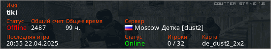 Играет на Counter Strike 1.6 сервере. Страна: РоссияПервый раз замечен 22:08 22.12.2020