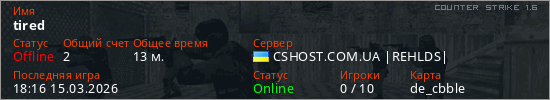 Играет на Counter Strike 1.6 сервере. Страна: УкраинаПервый раз замечен 23:53 10.03.2026