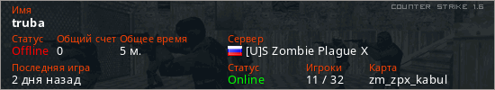 Играет на Counter Strike 1.6 сервере. Страна: РоссияПервый раз замечен 17:46 07.02.2026