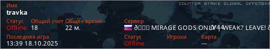 Играет на Counter Strike Global Offensive сервере. Страна: РоссияПервый раз замечен 21:15 11.04.2024
