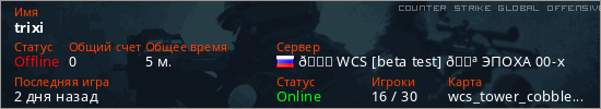Играет на Counter Strike Global Offensive сервере. Страна: РоссияПервый раз замечен 19:12 06.03.2026
