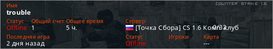 Играет на Counter Strike 1.6 сервере. Страна: РоссияПервый раз замечен 04:43 25.09.2025