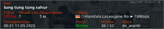 Играет на Counter Strike 1.6 сервере. Страна: ГерманияПервый раз замечен 00:19 11.05.2025