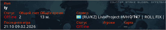 Играет на Counter Strike Global Offensive сервере. Страна: КазахстанПервый раз замечен 09:31 08.02.2026