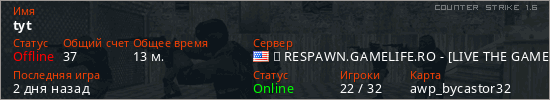 Играет на Counter Strike 1.6 сервере. Страна: СШАПервый раз замечен 04:24 14.03.2026