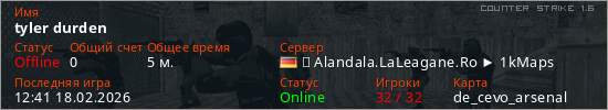 Играет на Counter Strike 1.6 сервере. Страна: ГерманияПервый раз замечен 12:39 18.02.2026