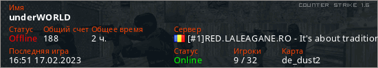 Играет на Counter Strike 1.6 сервере. Страна: РумынияПервый раз замечен 22:33 09.05.2022