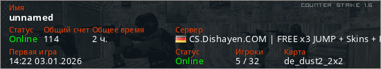 Играет на Counter Strike 1.6 сервере. Страна: ГерманияПервый раз замечен 14:22 03.01.2026