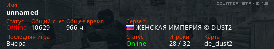 Играет на Counter Strike 1.6 сервере. Страна: РоссияПервый раз замечен 19:54 02.08.2021