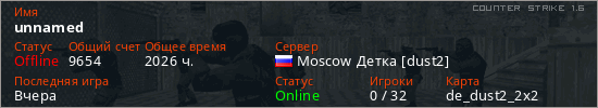 Последний раз был в сети Вчера Игрок с таким ником замечен на 81 сервере