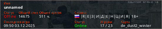 Последний раз был в сети 09:50 03.12.2025 Игрок с таким ником замечен на 81 сервере