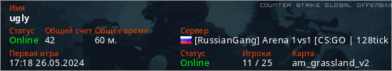 Играет на Counter Strike Global Offensive сервере. Страна: РоссияПервый раз замечен 17:18 26.05.2024