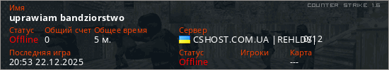Играет на Counter Strike 1.6 сервере. Страна: УкраинаПервый раз замечен 20:35 22.12.2025