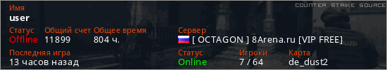 Последний раз был в сети 8 часов назад Игрок с таким ником замечен на 51 сервере
