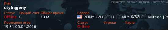 Играет на Counter Strike Global Offensive сервере. Страна: СШАПервый раз замечен 17:59 05.04.2026