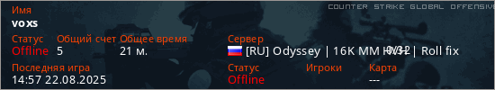 Играет на Counter Strike Global Offensive сервере. Страна: РоссияПервый раз замечен 00:22 31.07.2025