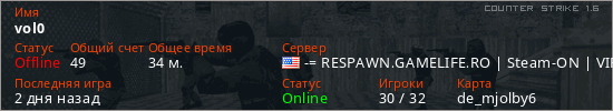Последний раз был в сети 2 дня назад Игрок с таким ником замечен на 6 серверах
