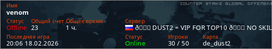 Играет на Counter Strike Global Offensive сервере. Страна: РоссияПервый раз замечен 09:35 28.12.2024
