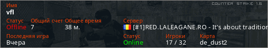 Играет на Counter Strike 1.6 сервере. Страна: РумынияПервый раз замечен 16:12 07.11.2025