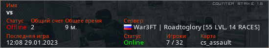 Играет на Counter Strike 1.6 сервере. Страна: РоссияПервый раз замечен 11:18 29.01.2023
