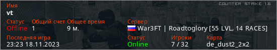 Играет на Counter Strike 1.6 сервере. Страна: РоссияПервый раз замечен 10:40 20.09.2022