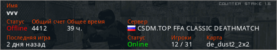 Последний раз был в сети 2 дня назад Игрок с таким ником замечен на 41 сервере