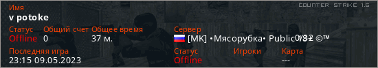 Играет на Counter Strike 1.6 сервере. Страна: РоссияПервый раз замечен 22:38 09.05.2023