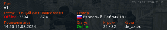 Играет на Counter Strike 1.6 сервере. Страна: РоссияПервый раз замечен 23:30 05.10.2020