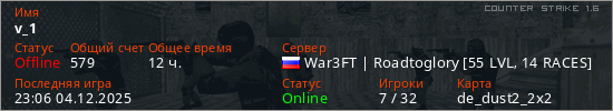 Последний раз был в сети 23:06 04.12.2025 Игрок с таким ником замечен на 31 сервере