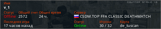 Играет на Counter Strike 1.6 сервере. Страна: РоссияПервый раз замечен 15:44 04.10.2021
