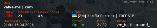 Играет на Counter Strike 1.6 сервере. Страна: УкраинаПервый раз замечен 19:01 21.03.2026