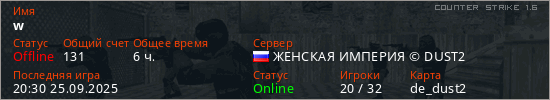 Играет на Counter Strike 1.6 сервере. Страна: РоссияПервый раз замечен 10:09 03.09.2022