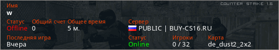 Последний раз был в сети Вчера Игрок с таким ником замечен на 56 серверах