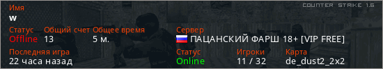 Последний раз был в сети 16 часов назад Игрок с таким ником замечен на 58 серверах