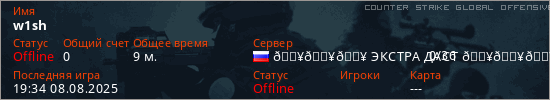 Играет на Counter Strike Global Offensive сервере. Страна: РоссияПервый раз замечен 12:23 20.02.2025