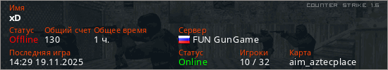 Играет на Counter Strike 1.6 сервере. Страна: РоссияПервый раз замечен 13:19 17.03.2023